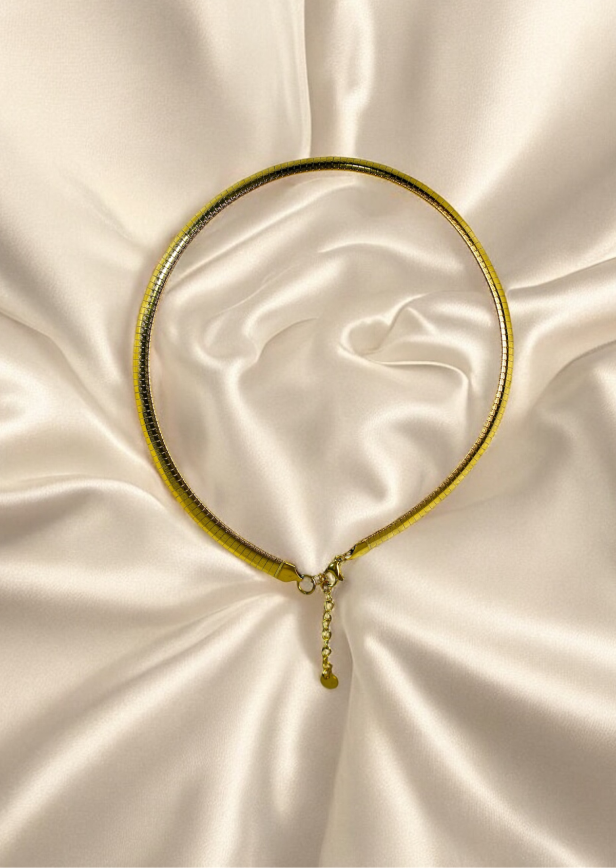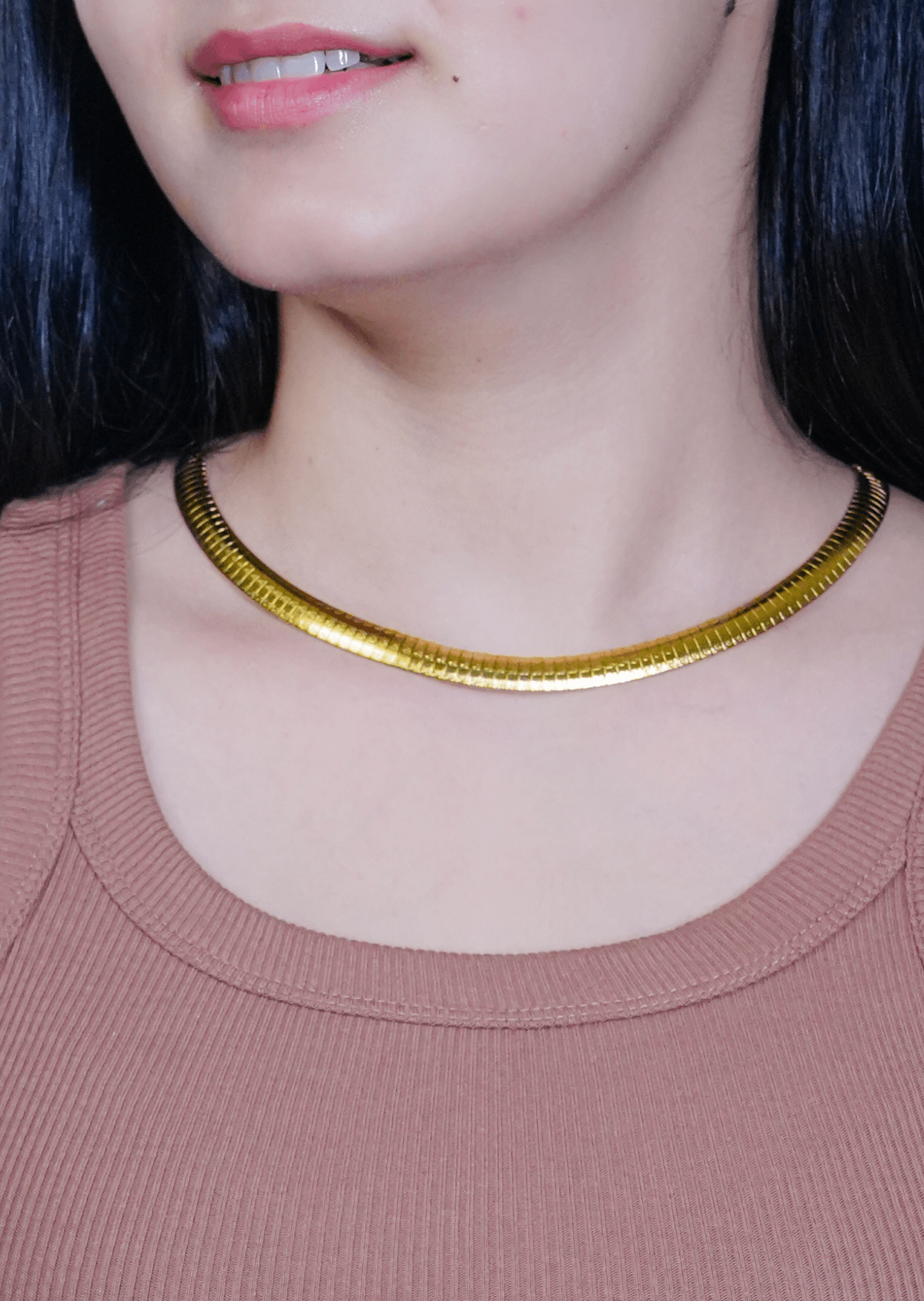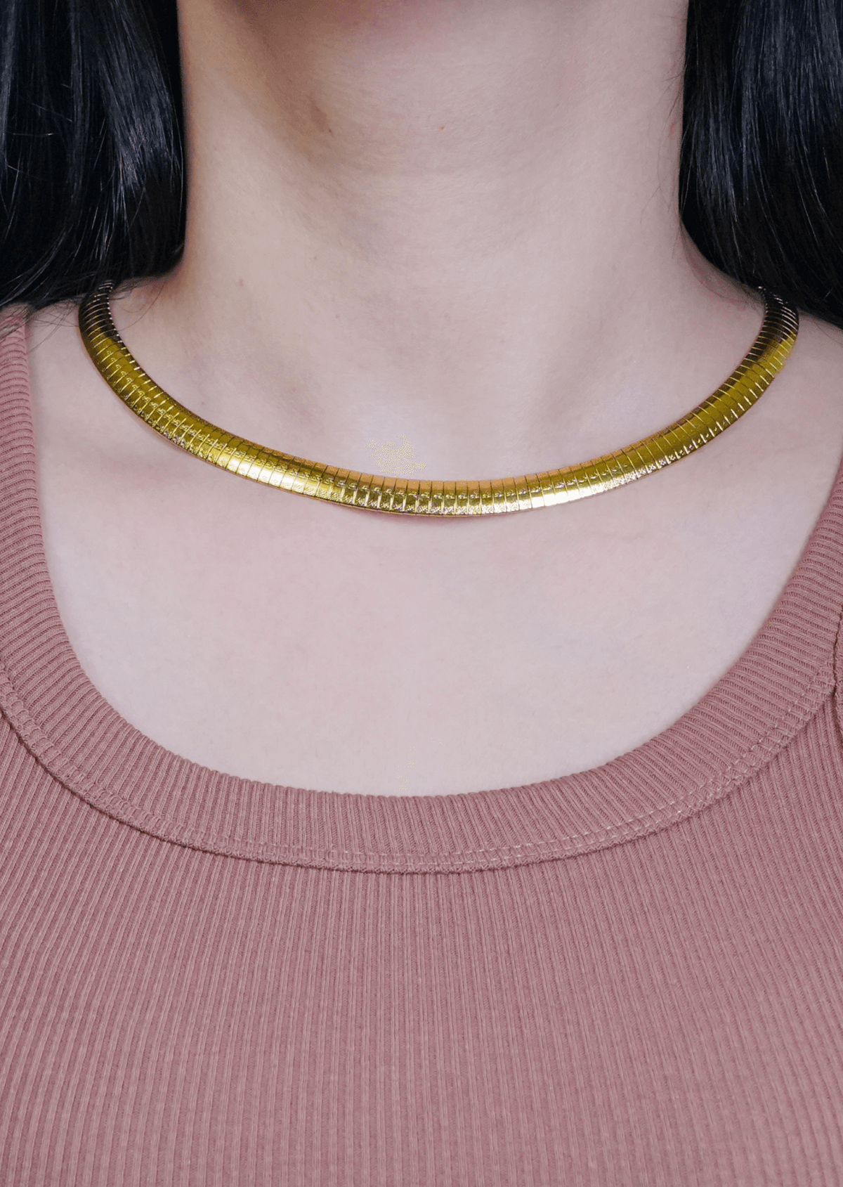 Crafted with 18k gold plating, this necklace is hypoallergenic and anti-tarnish, ensuring long-lasting durability and comfort. Its smooth, curved silhouette offers a bold yet refined touch, making it suitable for both casual and formal wear. Lightweight and versatile, the Casual Chic necklace adds a polished finish to any ensemble.