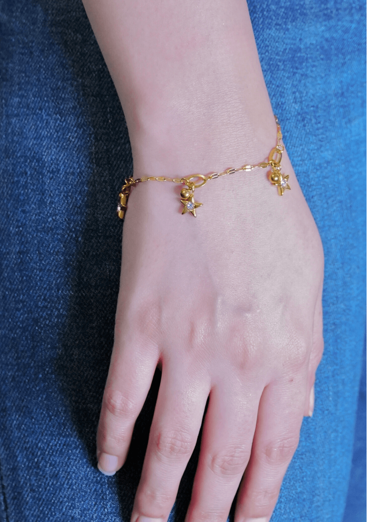 Crafted from high-quality materials, this bracelet showcases a sleek design with three delicate stars. Its minimalistic style and elegant finish make it perfect for layering with other bracelets or wearing alone. The subtle shine and refined look add sophistication to any outfit.