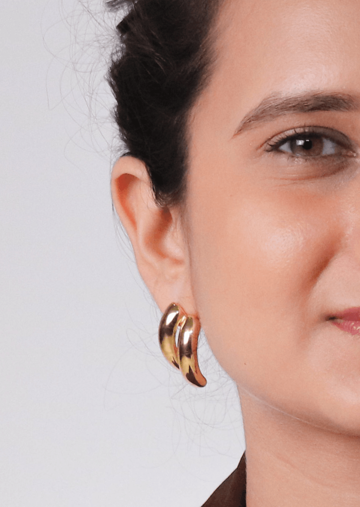 The Chunky Chic Earrings, crafted from 18k gold-plated metal, feature a bold, unique design that fuses contemporary style with everyday elegance.