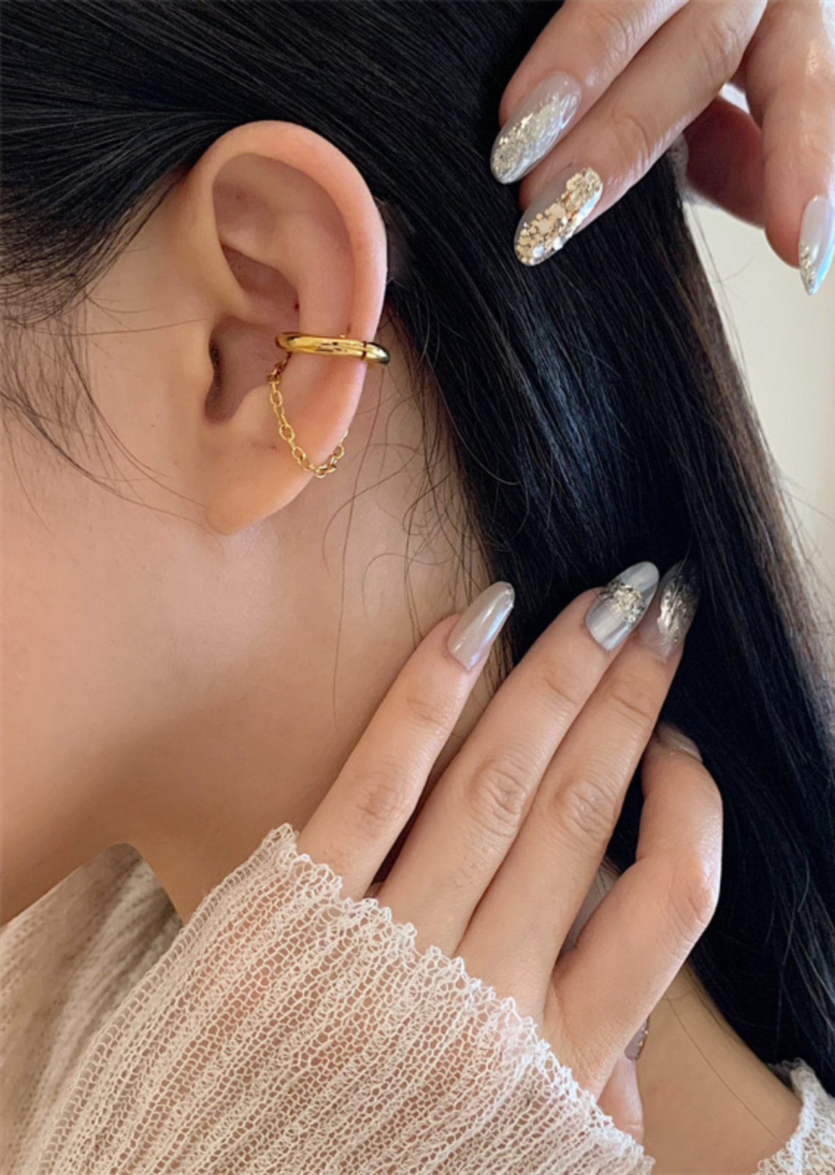 The DuoLink Cuff is the perfect blend of edgy and elegant. Featuring a sleek gold ear cuff connected by a delicate chain, it delivers a bold statement—no piercing needed to rock this look!