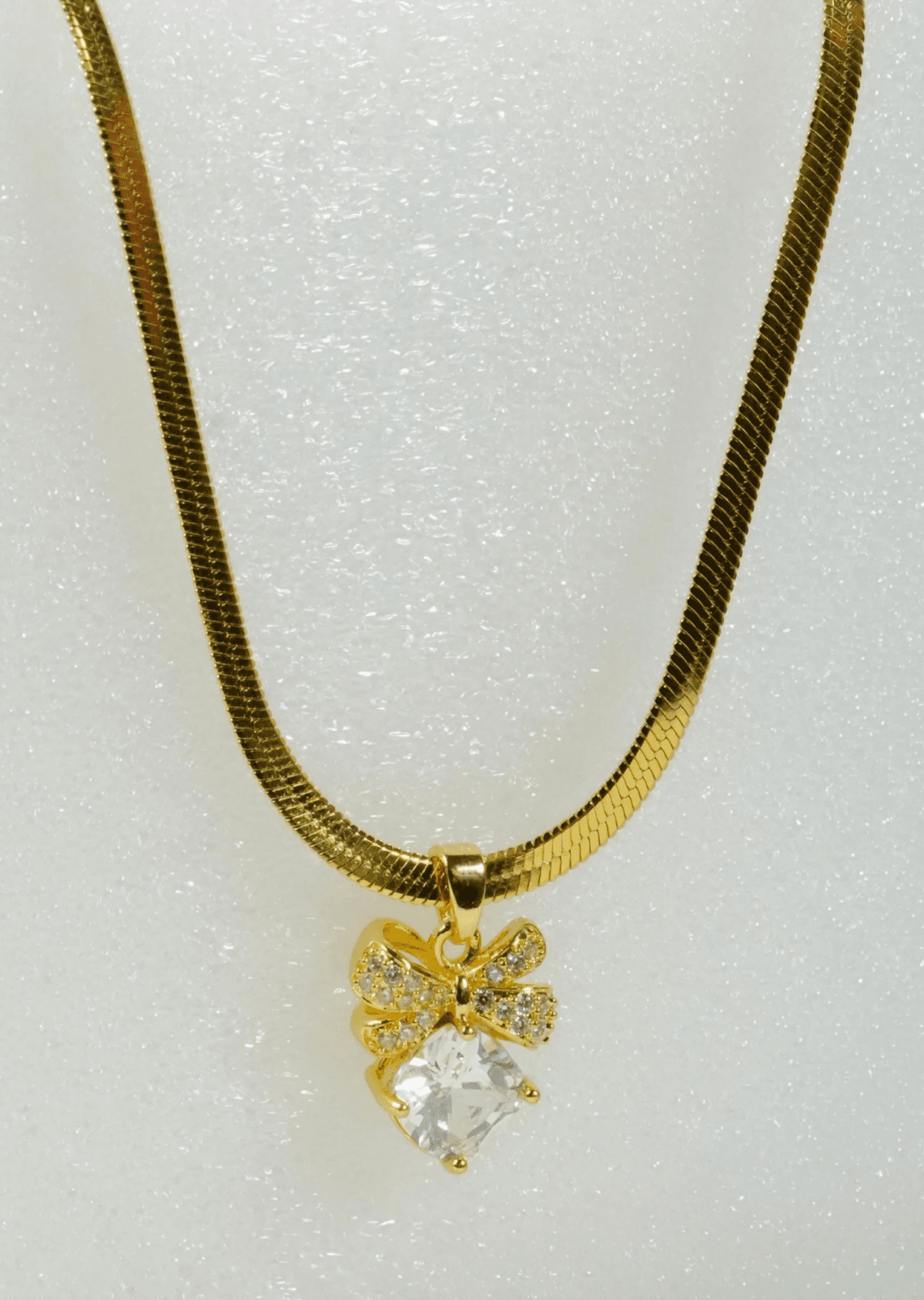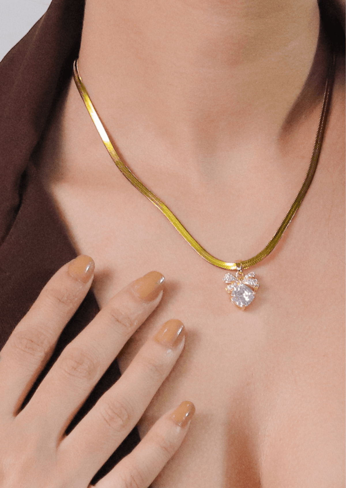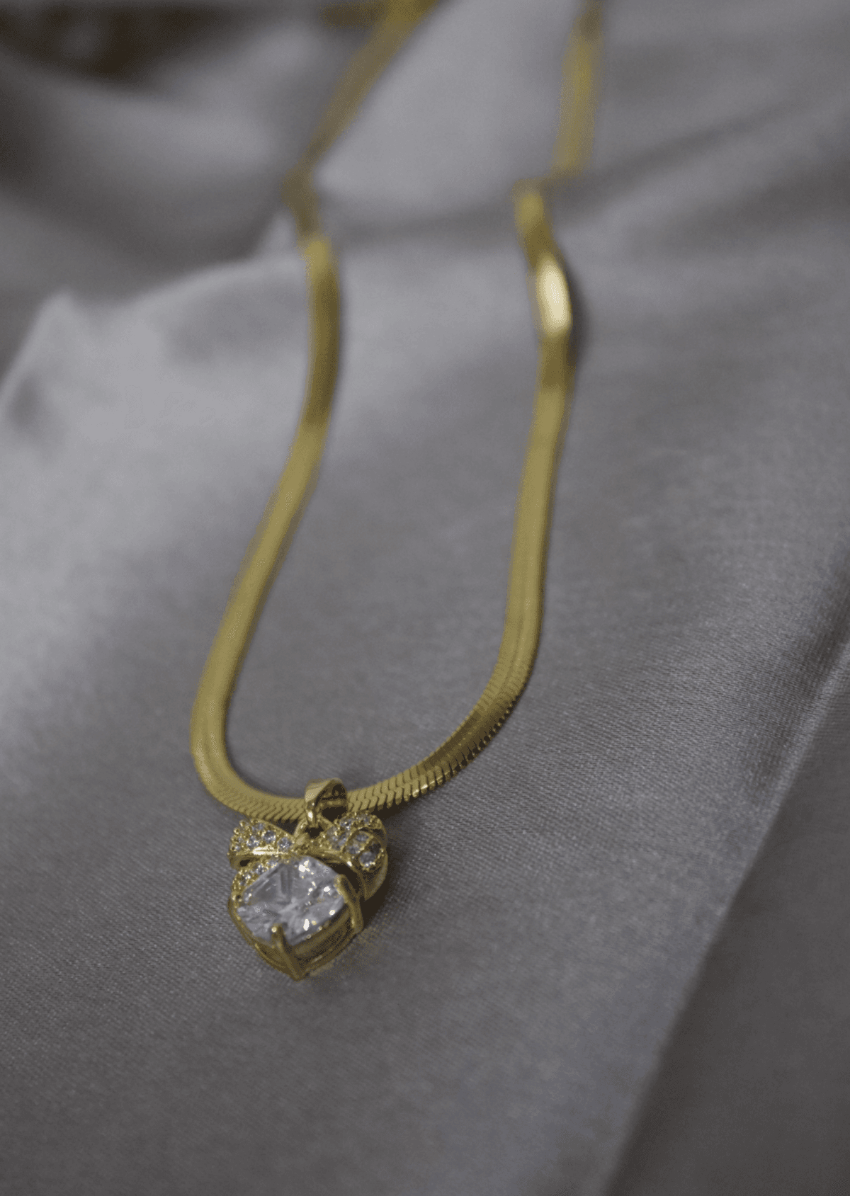 This sleek gold herringbone chain with a dazzling heart pendant is the perfect blend of elegance and everyday glam. Lightweight and versatile, it’s designed to make any outfit shine.