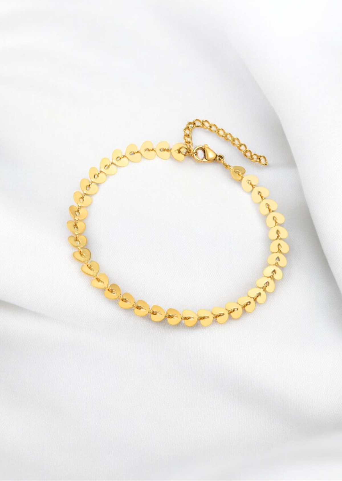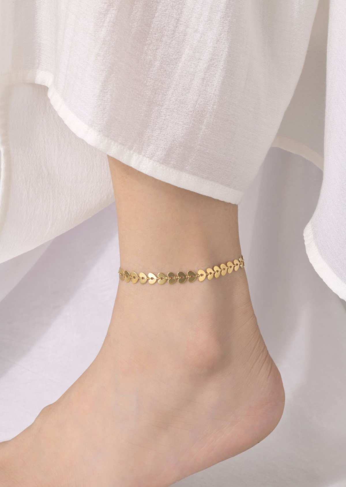 Crafted with 18k gold plating, the Heart on My Heel Anklet is hypoallergenic, anti-tarnish, and waterproof. Its fine design ensures it stays beautiful through every step you take.