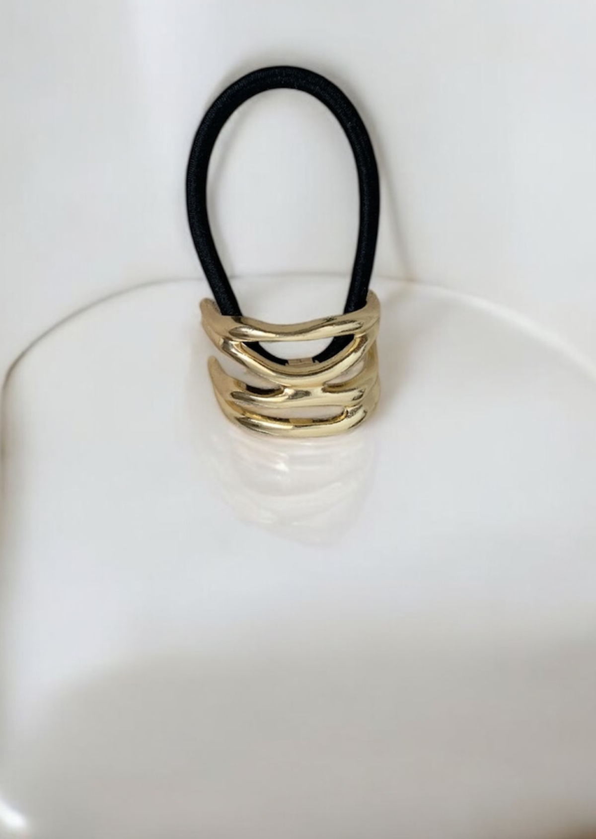 Crafted with high-quality materials and finished with 18k gold plating, the Hollow Arch Hair Tie is hypoallergenic and resistant to tarnishing. Its eye-catching design not only secures your hair but also adds a chic flair to your look.
