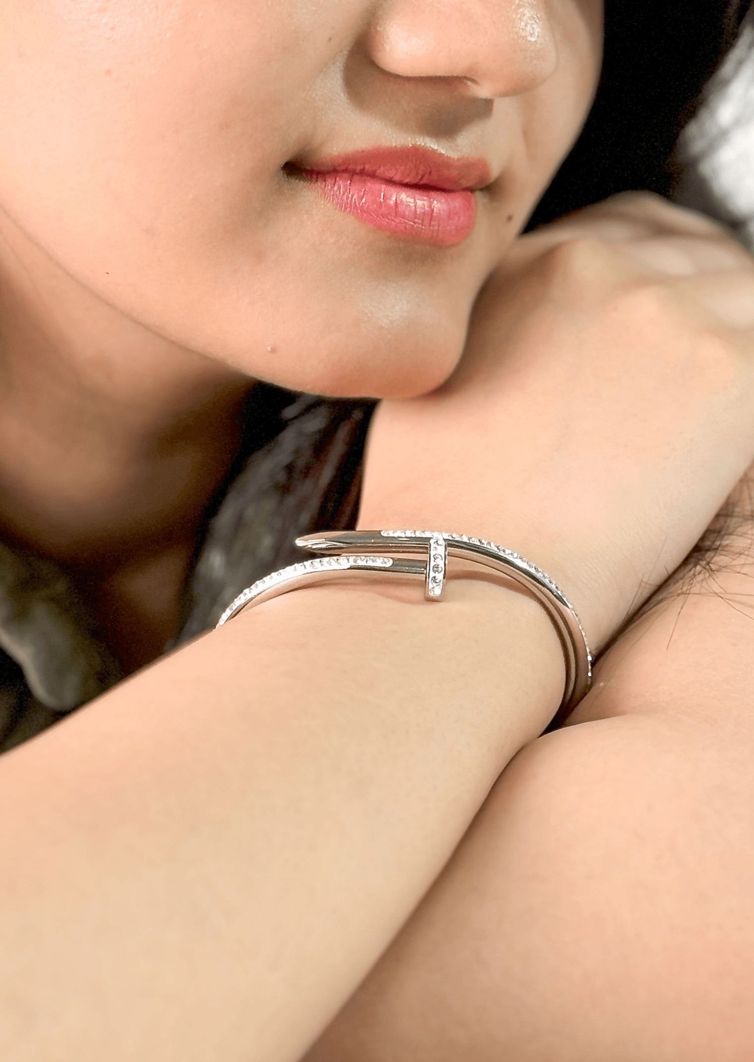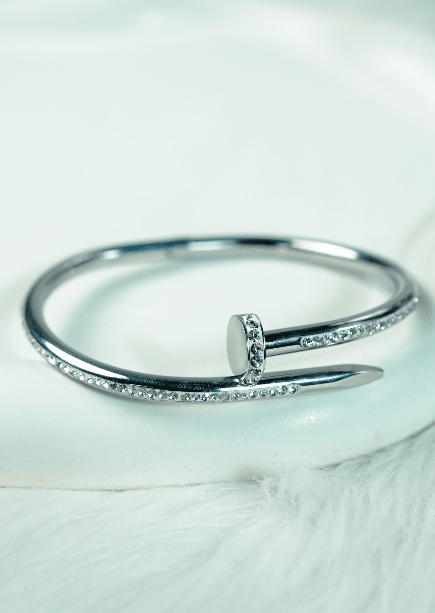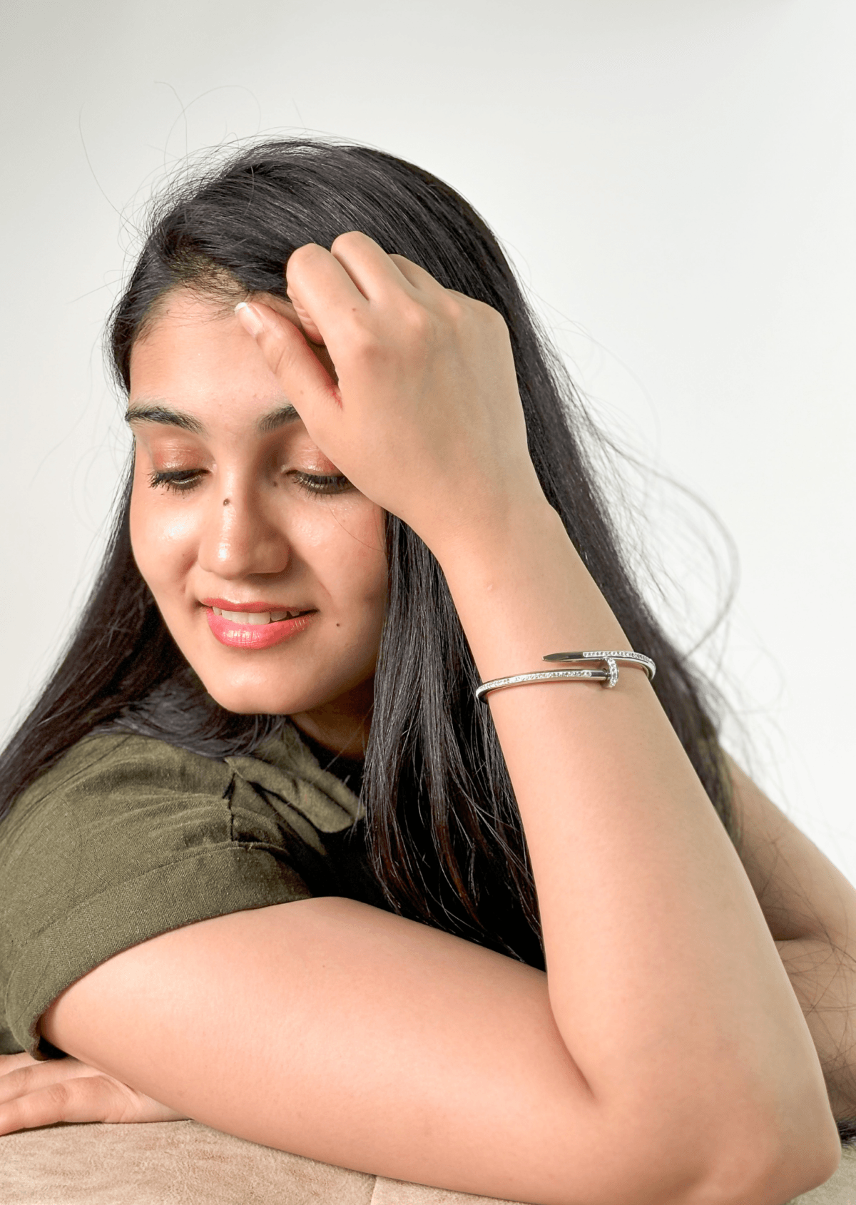 Elevate your accessory game with the Screwy Silver Cuff. This edgy yet elegant cuff is crafted from 92.5 sterling silver, offering a modern twist on a classic design with its unique, screw-inspired detailing.