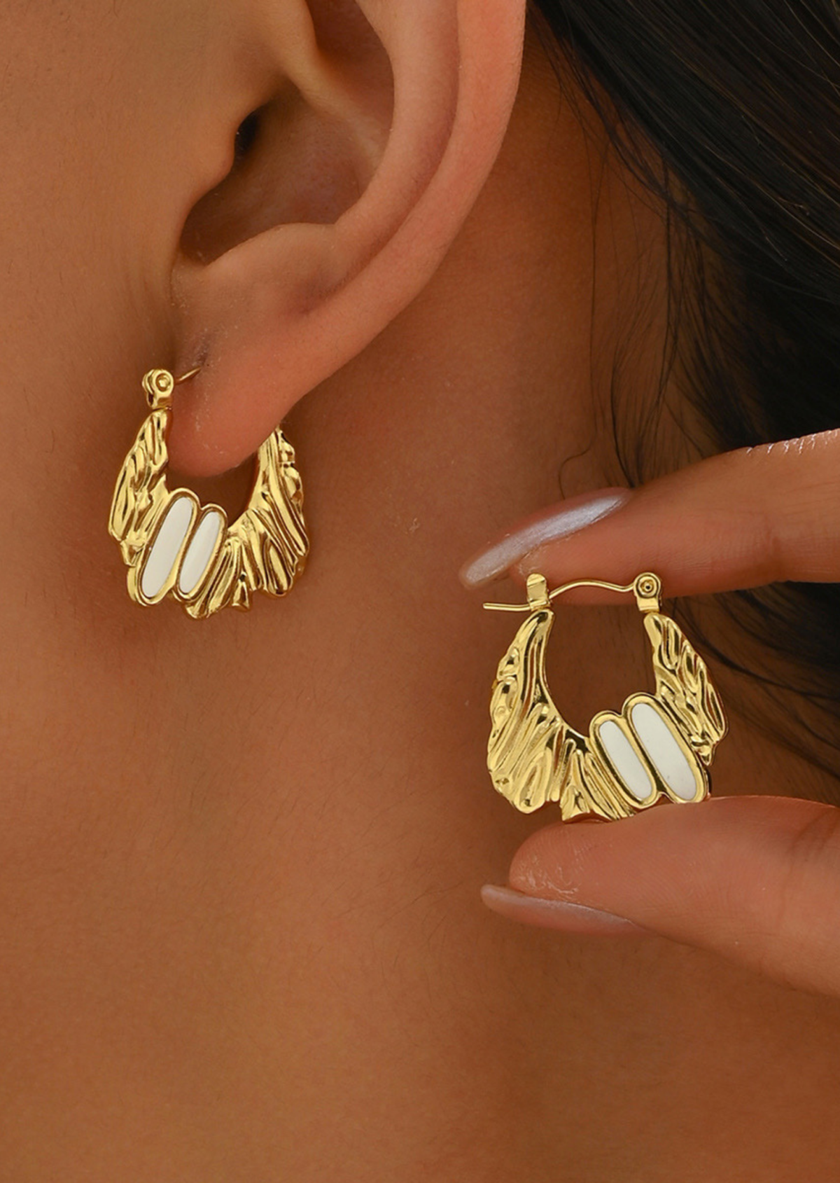 Crafted with 18k gold plating, the Snowdrops Hoops are hypoallergenic, anti-tarnish, and waterproof. The white drops add a subtle pop of contrast, making these hoops an eye-catching yet refined accessory.