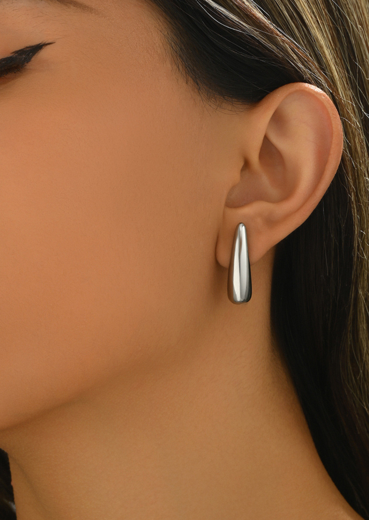 Crafted with high-quality silver, the Teardrop Earrings are hypoallergenic, anti-tarnish, and waterproof. Their bold silhouette ensures they stand out, making them a perfect accessory for both everyday wear and special occasions.