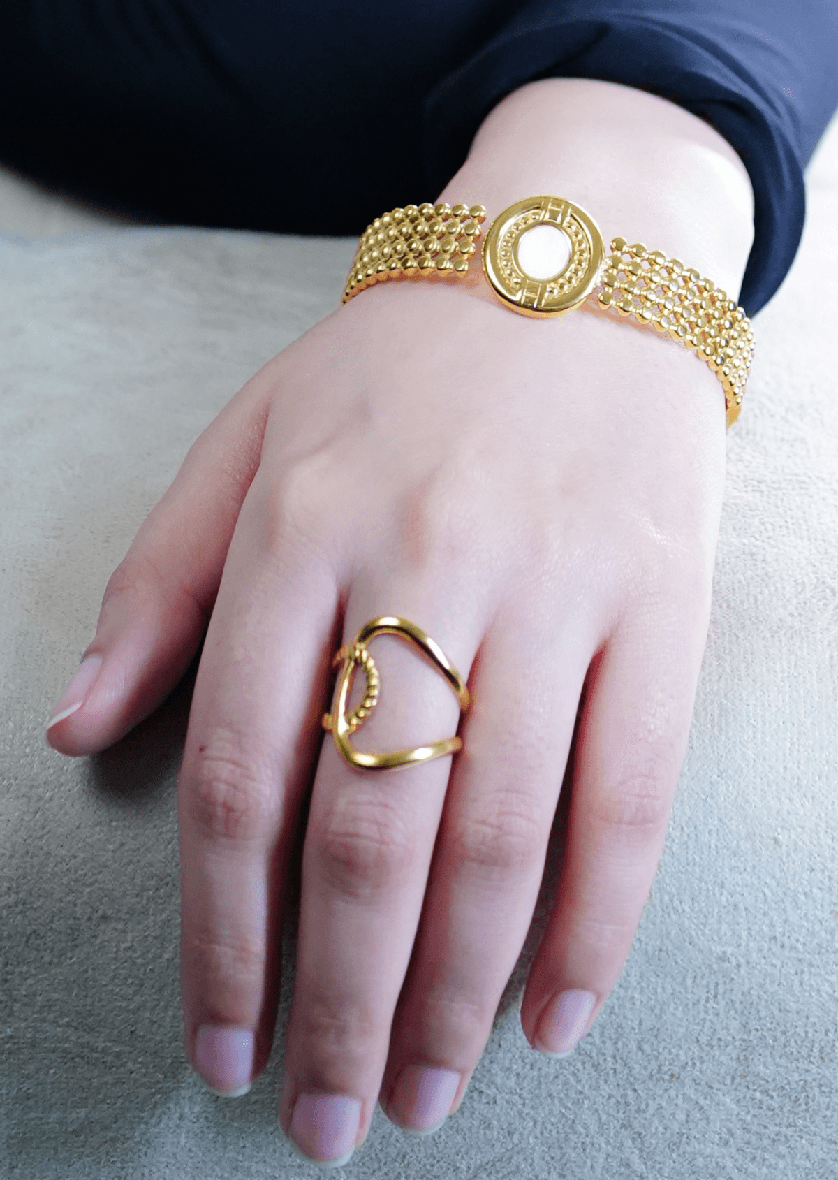 Crafted with 18k gold plating, the Unity Ring is as tough as it is trendy. With anti-tarnish, waterproof, and hypoallergenic features, it’s ready for all your adventures.