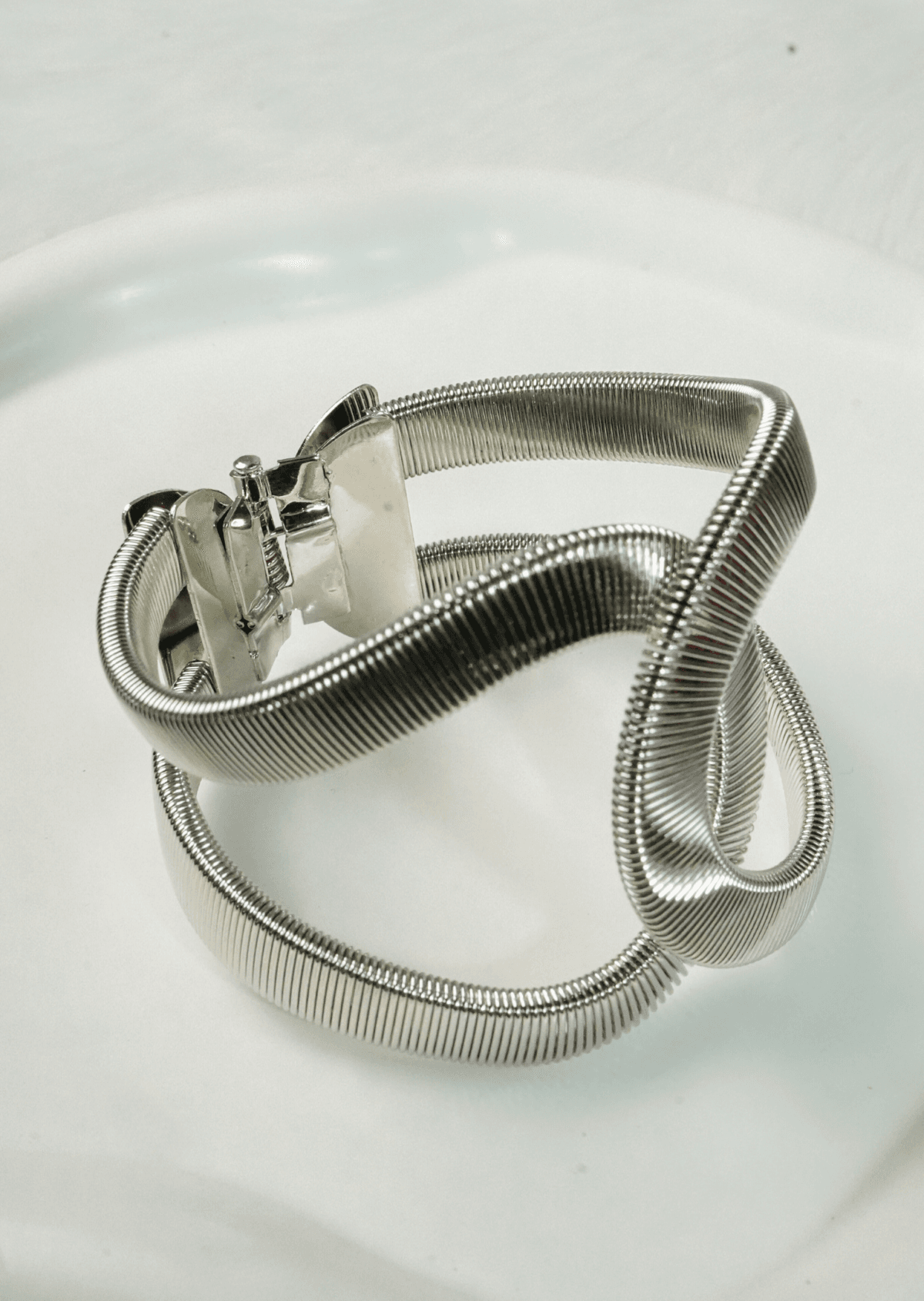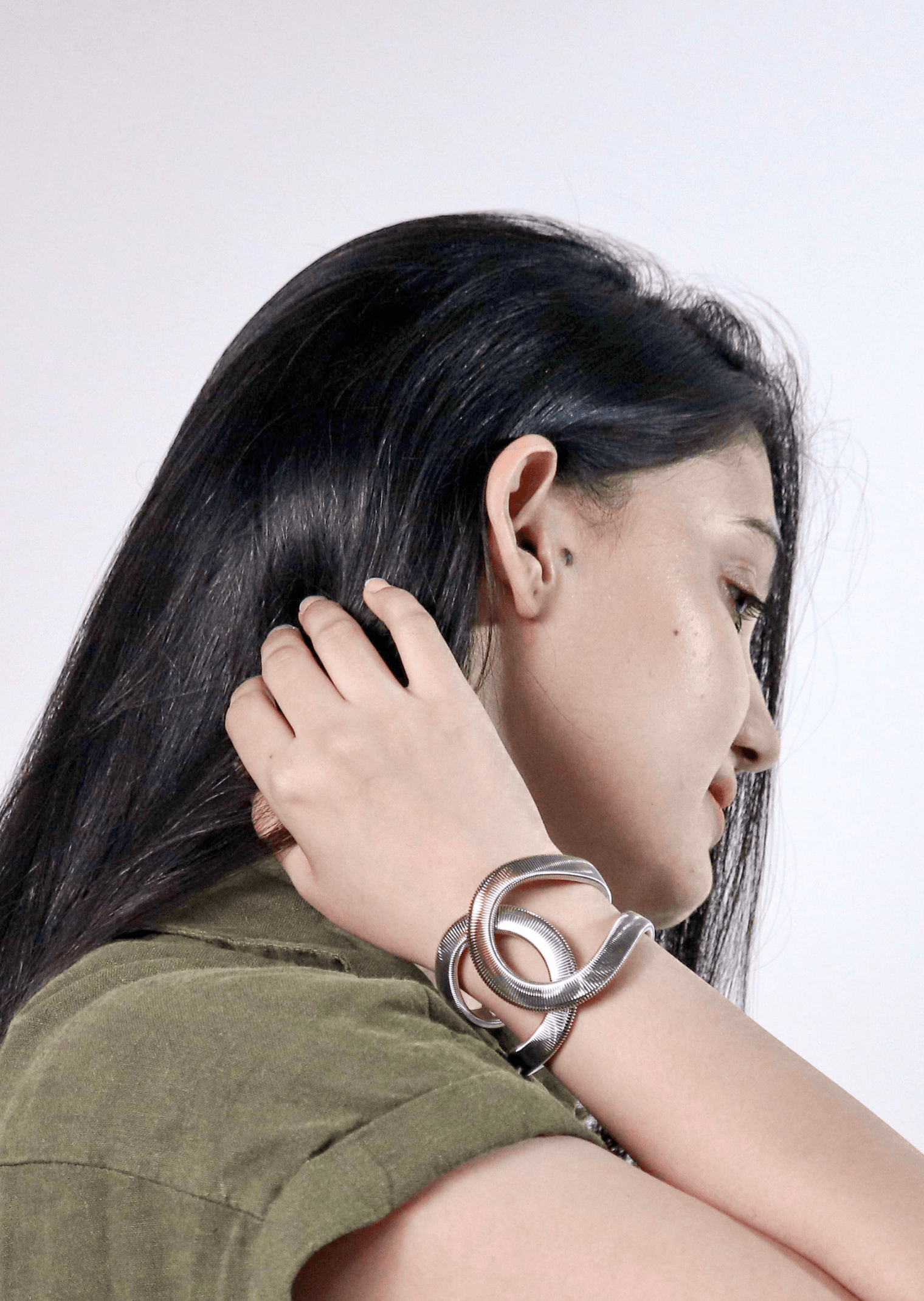 The Urban Wrap, crafted from 92.5 sterling silver, features a unique design that makes it a standout statement piece on its own.